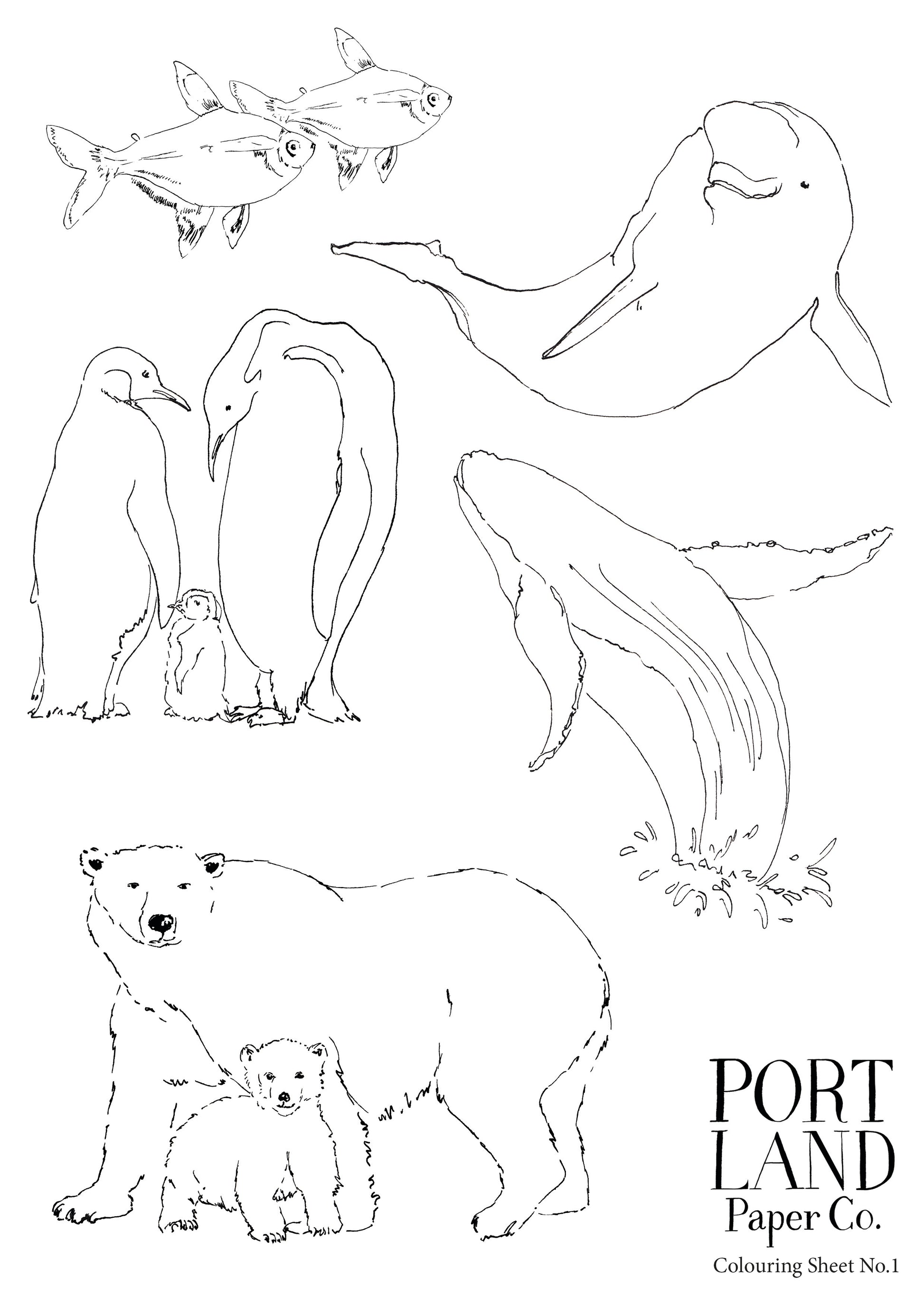 Meet the first Portland Paper Co. colouring sheet! Nothing fancy, and pretty simple; outlines of five different animals (nine if you count the individuals!), ready to print and colour in - for kids and big kids too! Penguins, x-ray fish, a beluga whale, a humpback whale and polar bears are all ready and waiting.