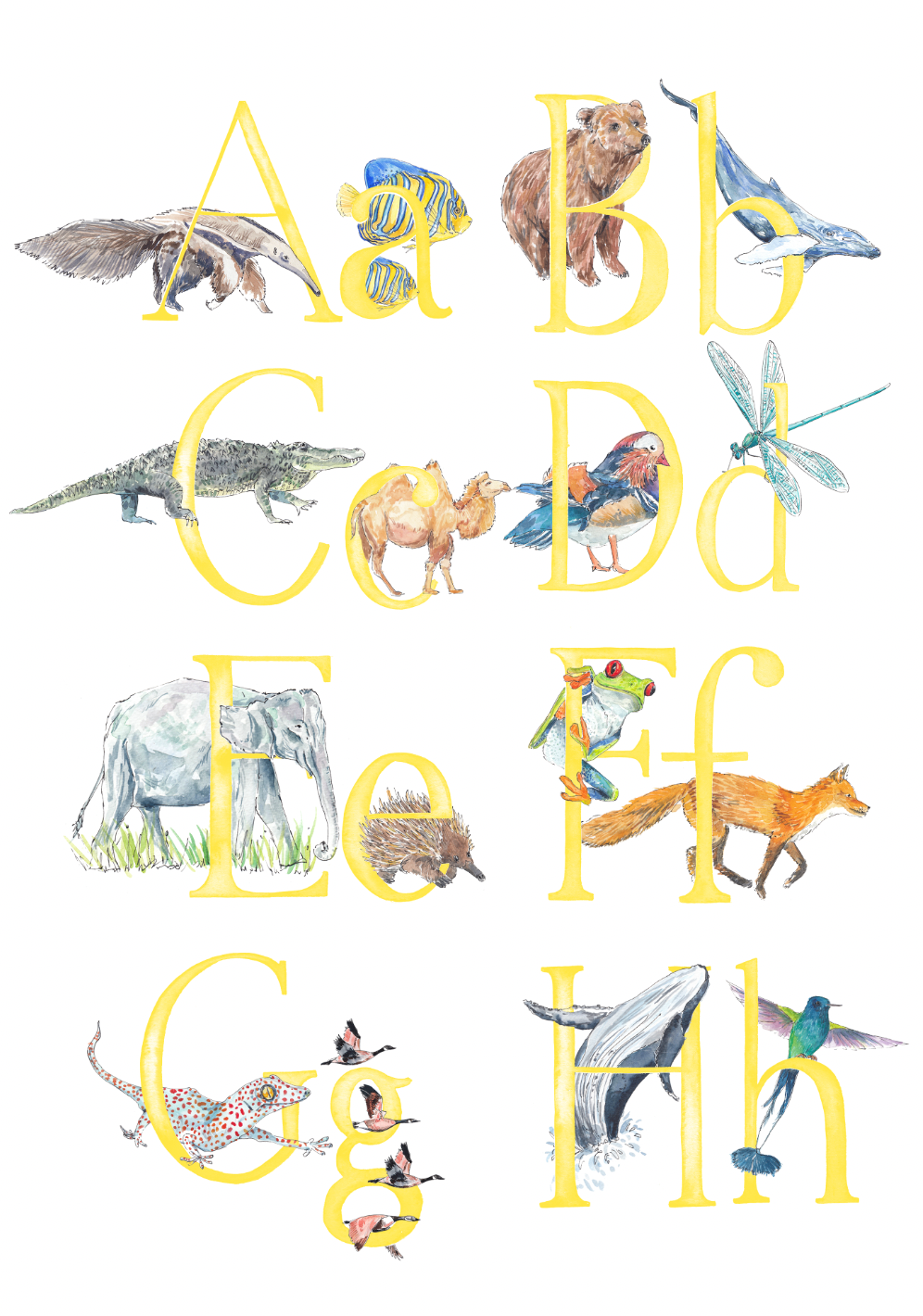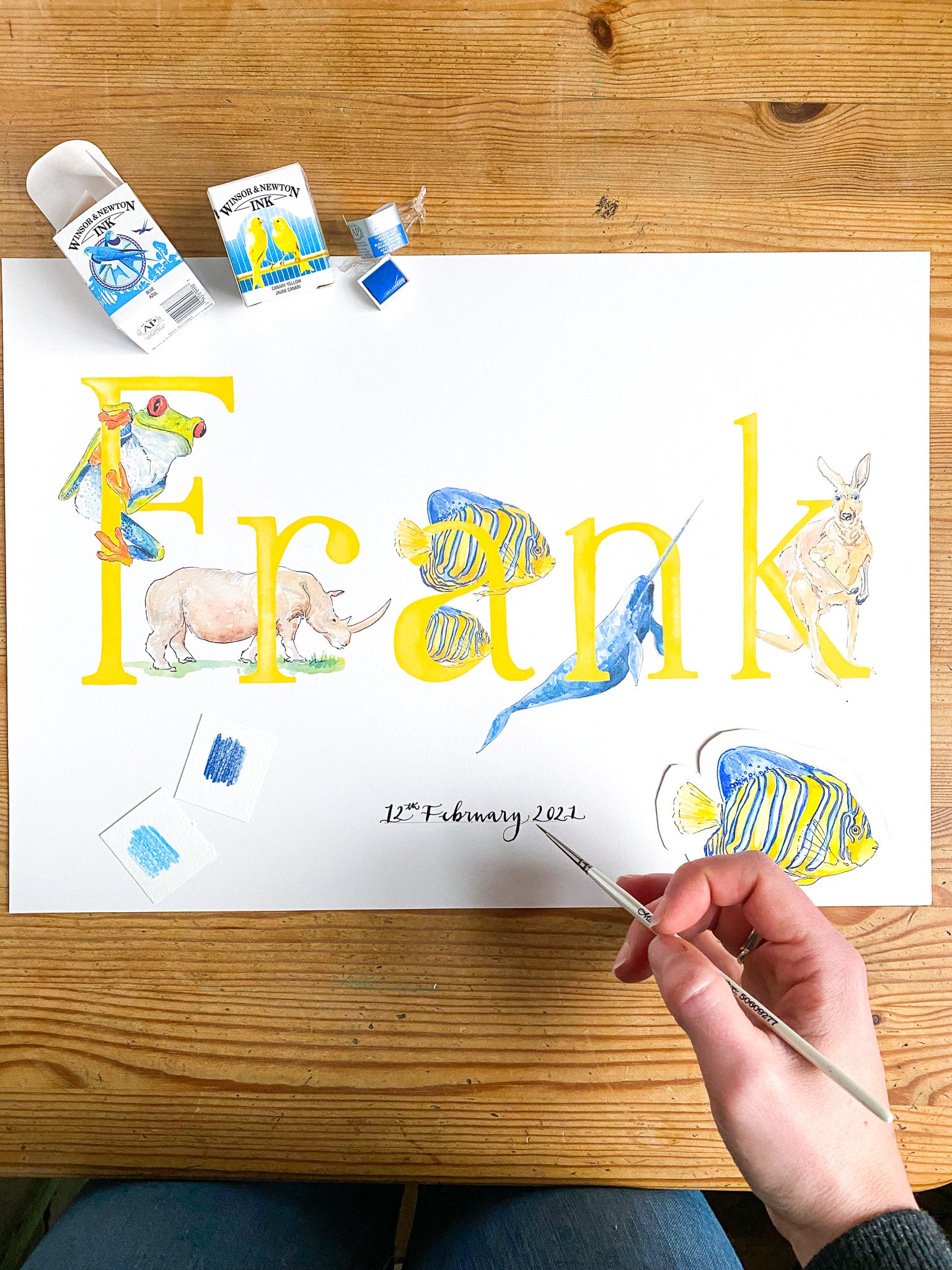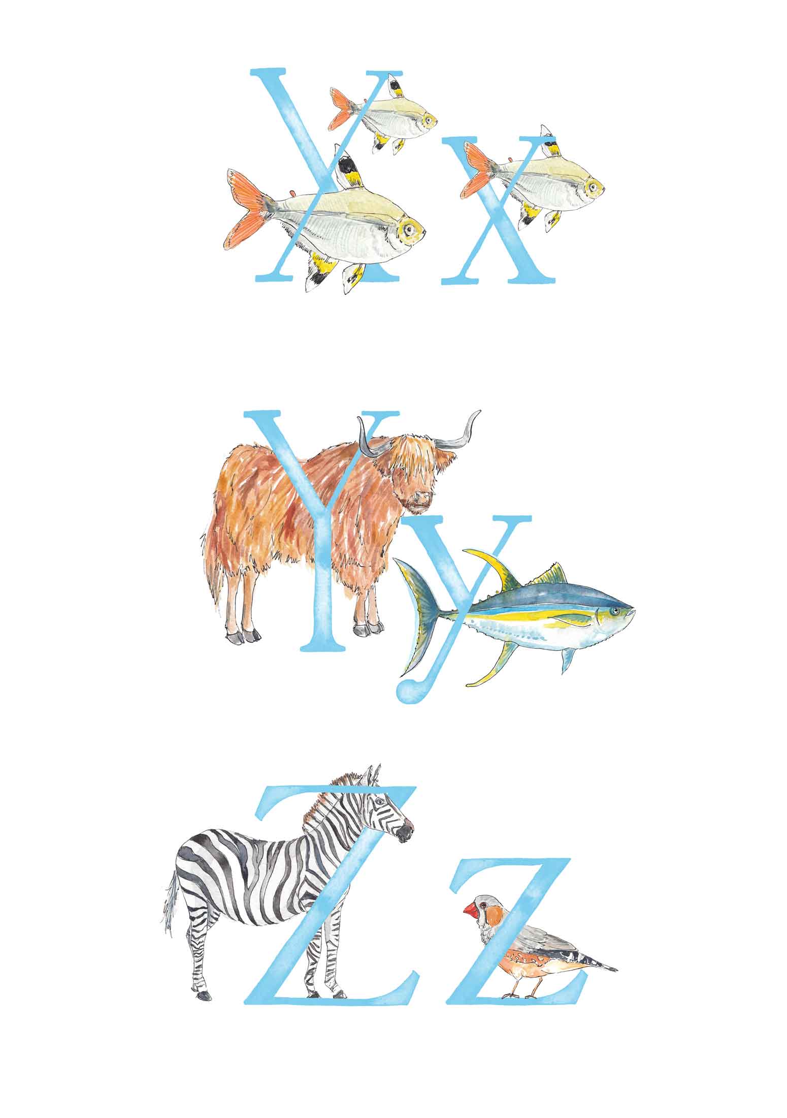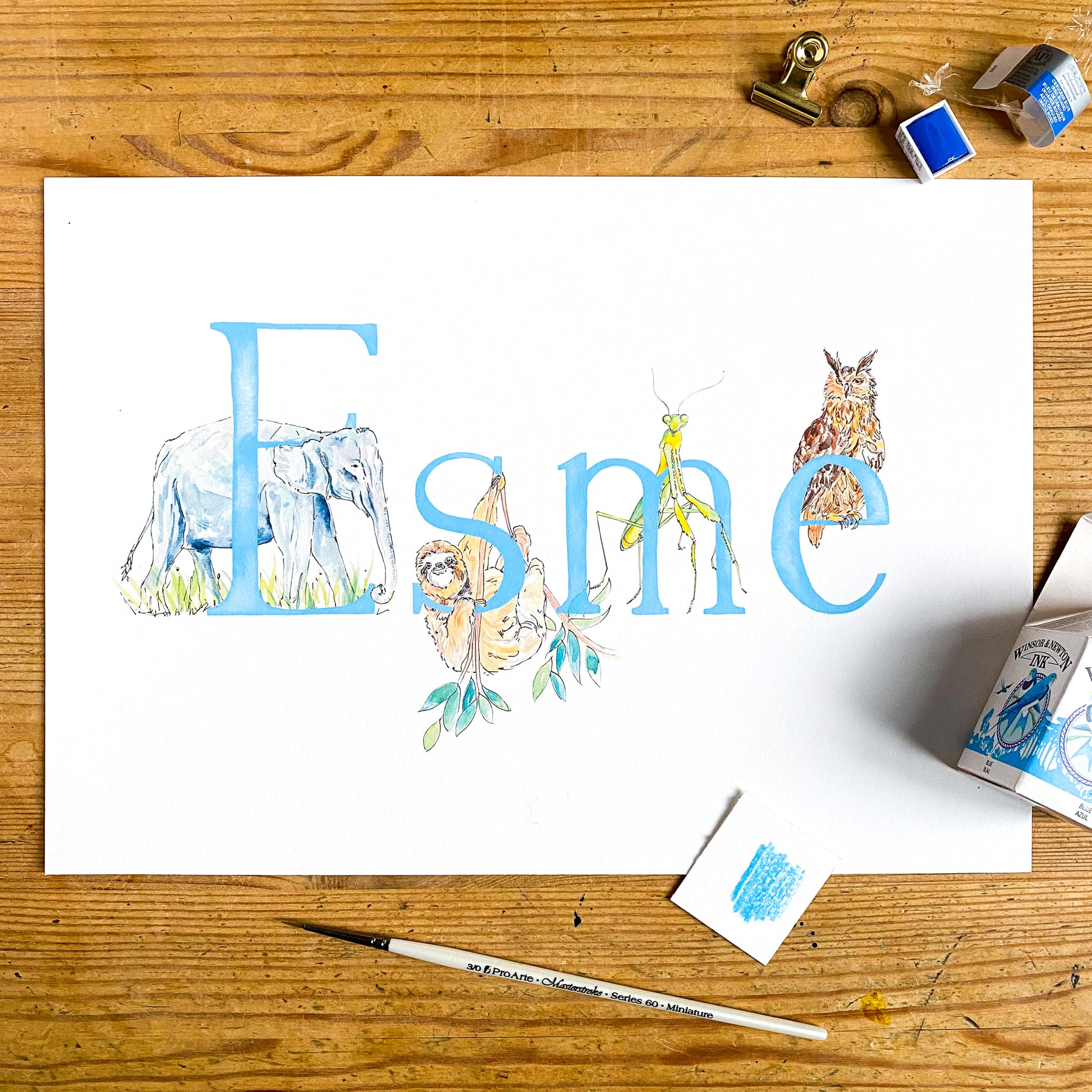 - I will choose the animals to fit each letter, and make sure that the overall composition of the print is balanced, but if you'd like a specific animal that you know I’ve painted, please leave a note (you can do this when you click on basket) and I’ll do my best to include it.