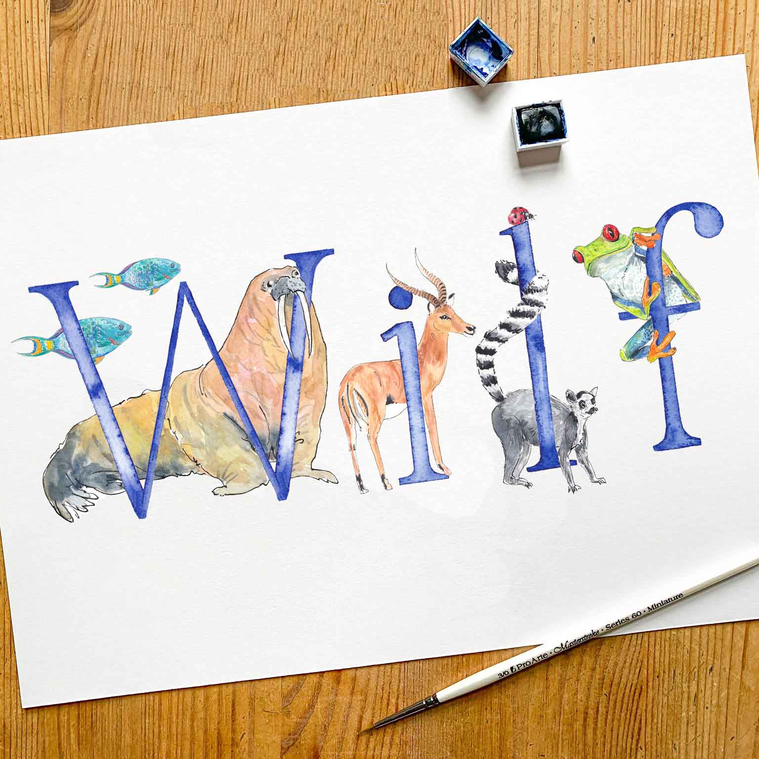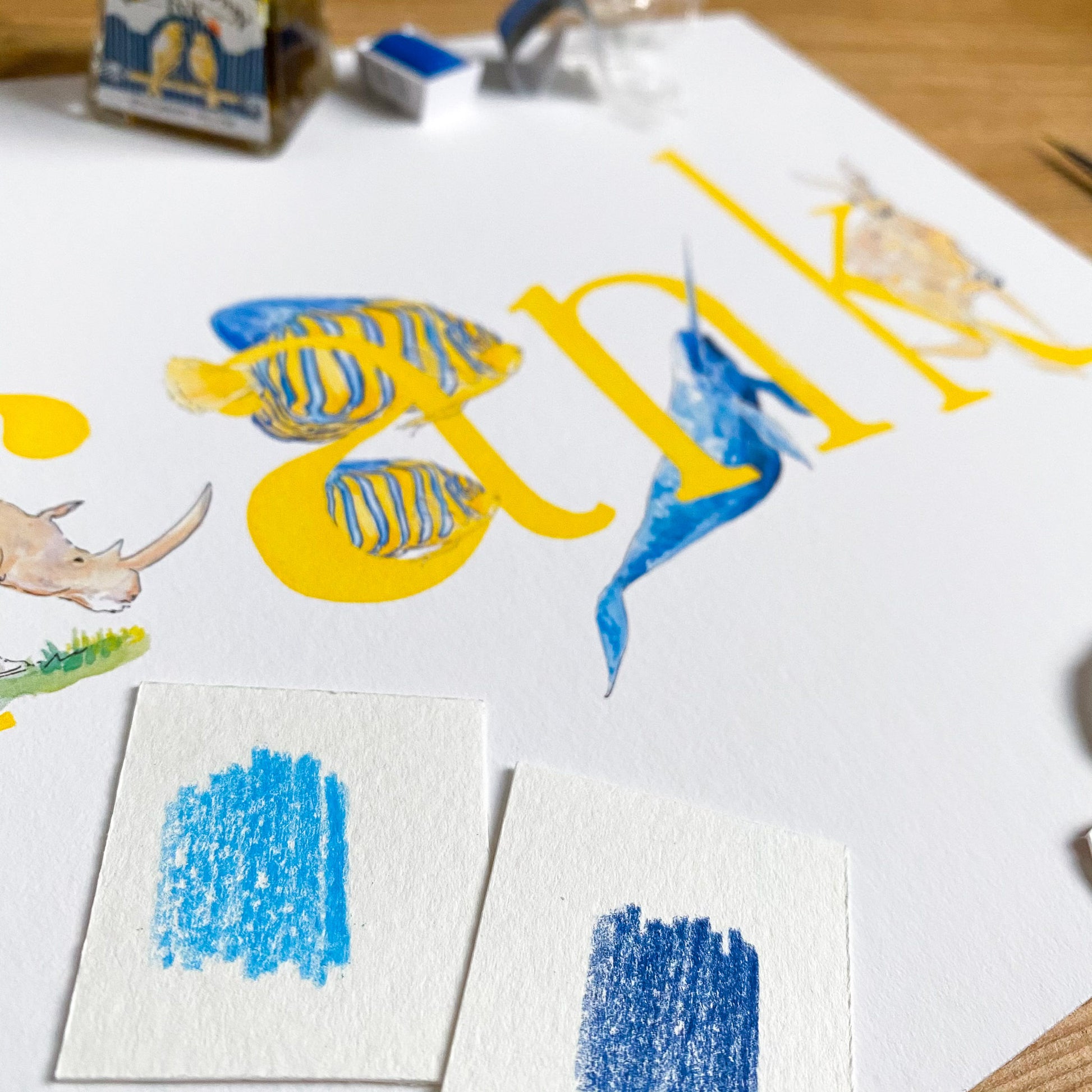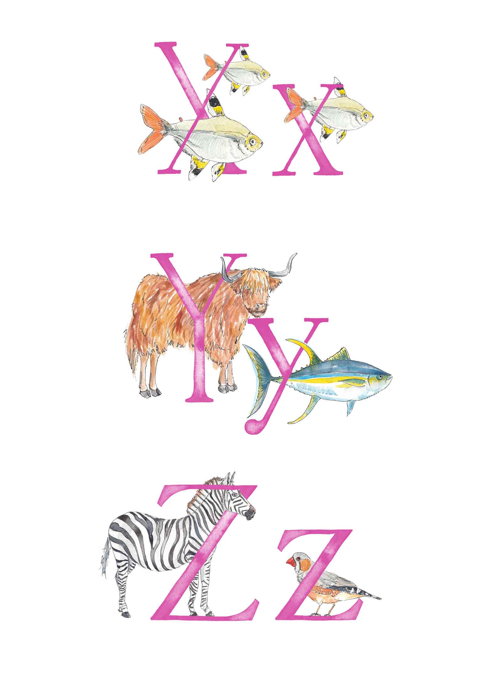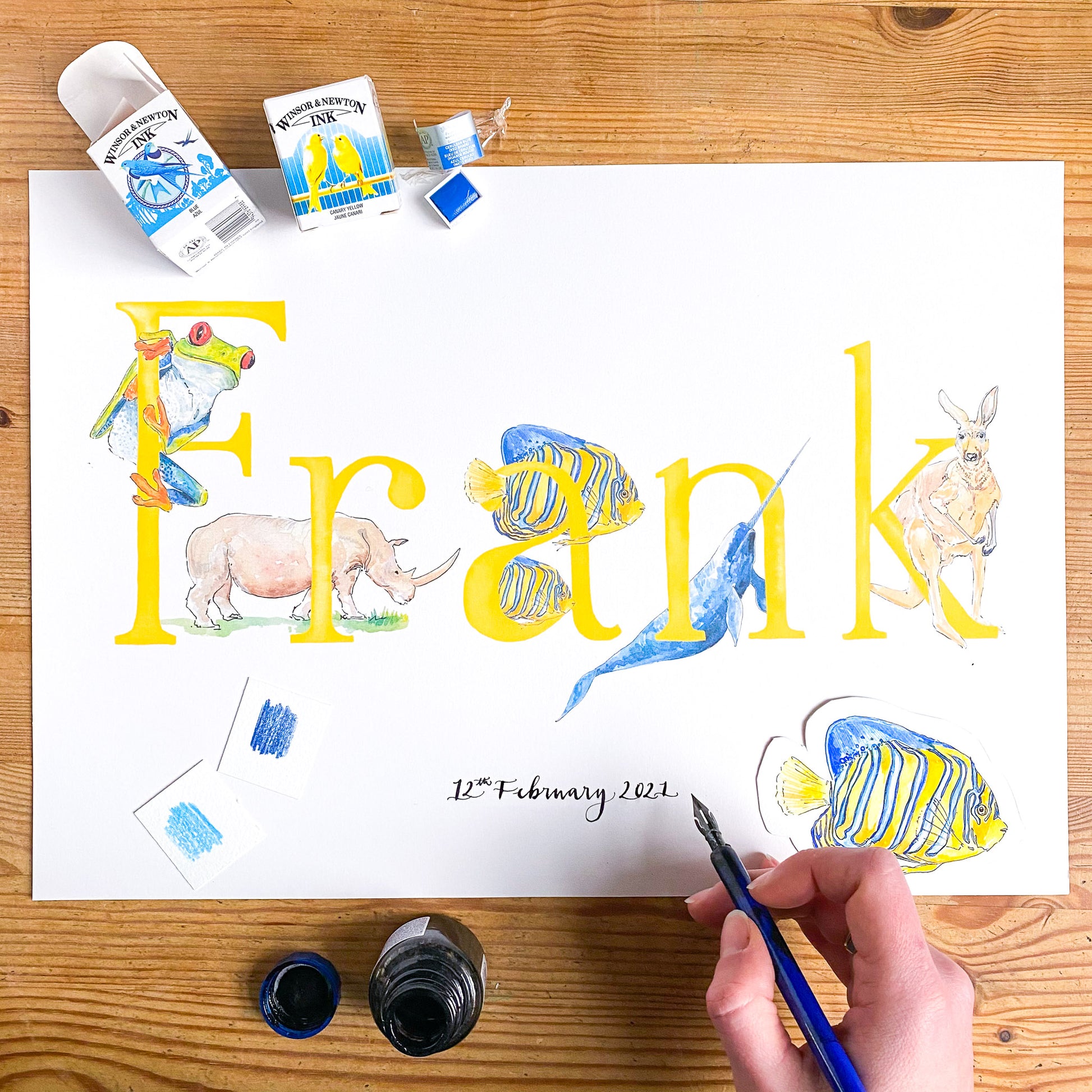 - I will choose the animals to fit each letter, and make sure that the overall composition of the print is balanced, but if you'd like a specific animal that you know I’ve painted, please leave a note (you can do this when you click on basket) and I’ll do my best to include it.