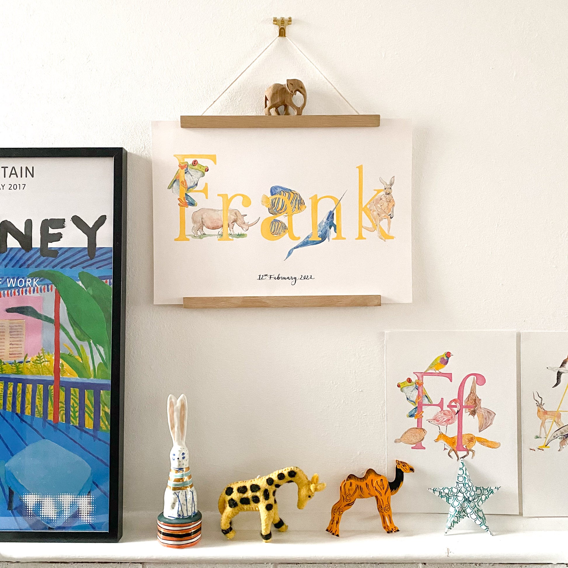 - There are two other designs in the Animal Alphabet collection – the single letter print, and the personalised initial print, if you’d like to compare!