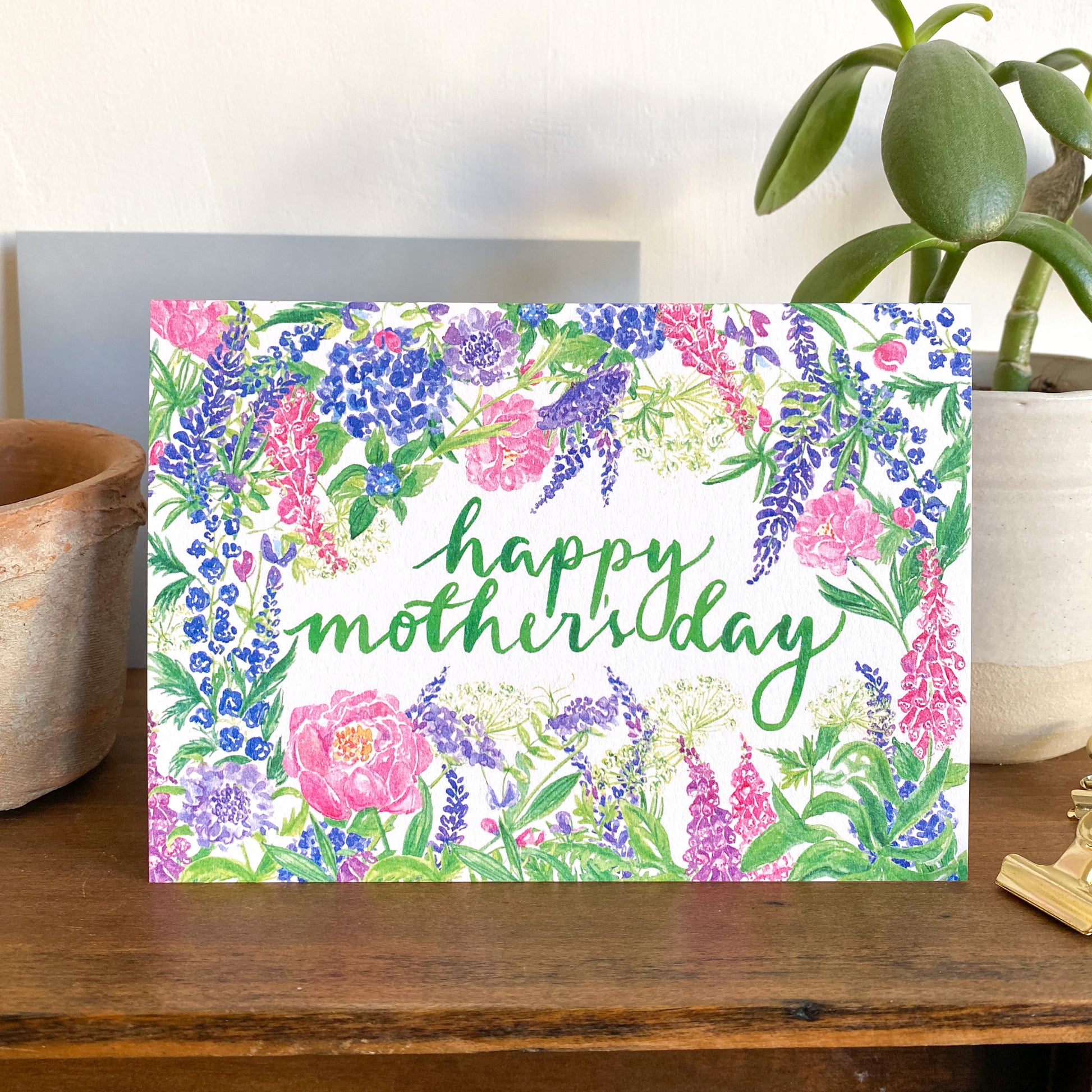 Celebrate the coming of spring - and your mum, or mother figure - with a meadow of lupins, peonies, foxgloves and more, in soft pinks, blues and purples.