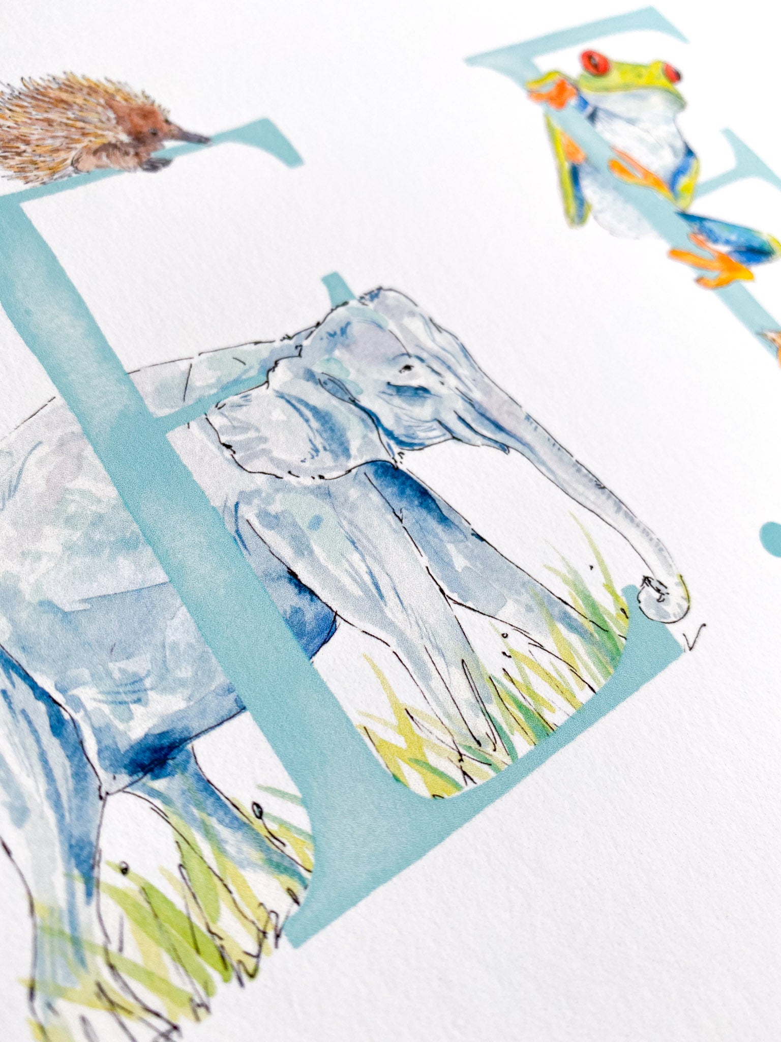- There are two other designs in the Animal Alphabet collection – the single letter print, and the personalised initial print, if you’d like to compare!
