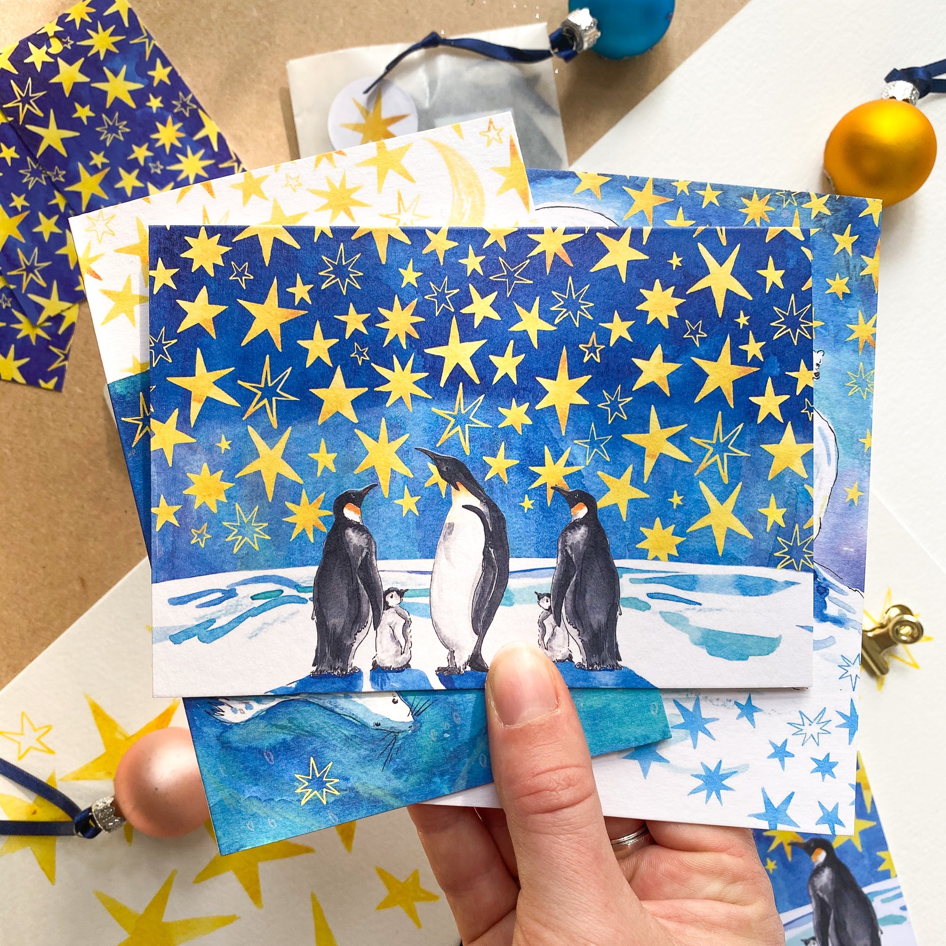 The ‘Starry Starry Night’ Christmas card collection (this is one of three in the collection) is inspired by the idea of hope; hope that things will get better and we will all be stronger and braver. The designs also act as a message of hope for the planet in the midst of climate change. Let's take courage in sharing the same star filled sky with each other – as well as the penguins.