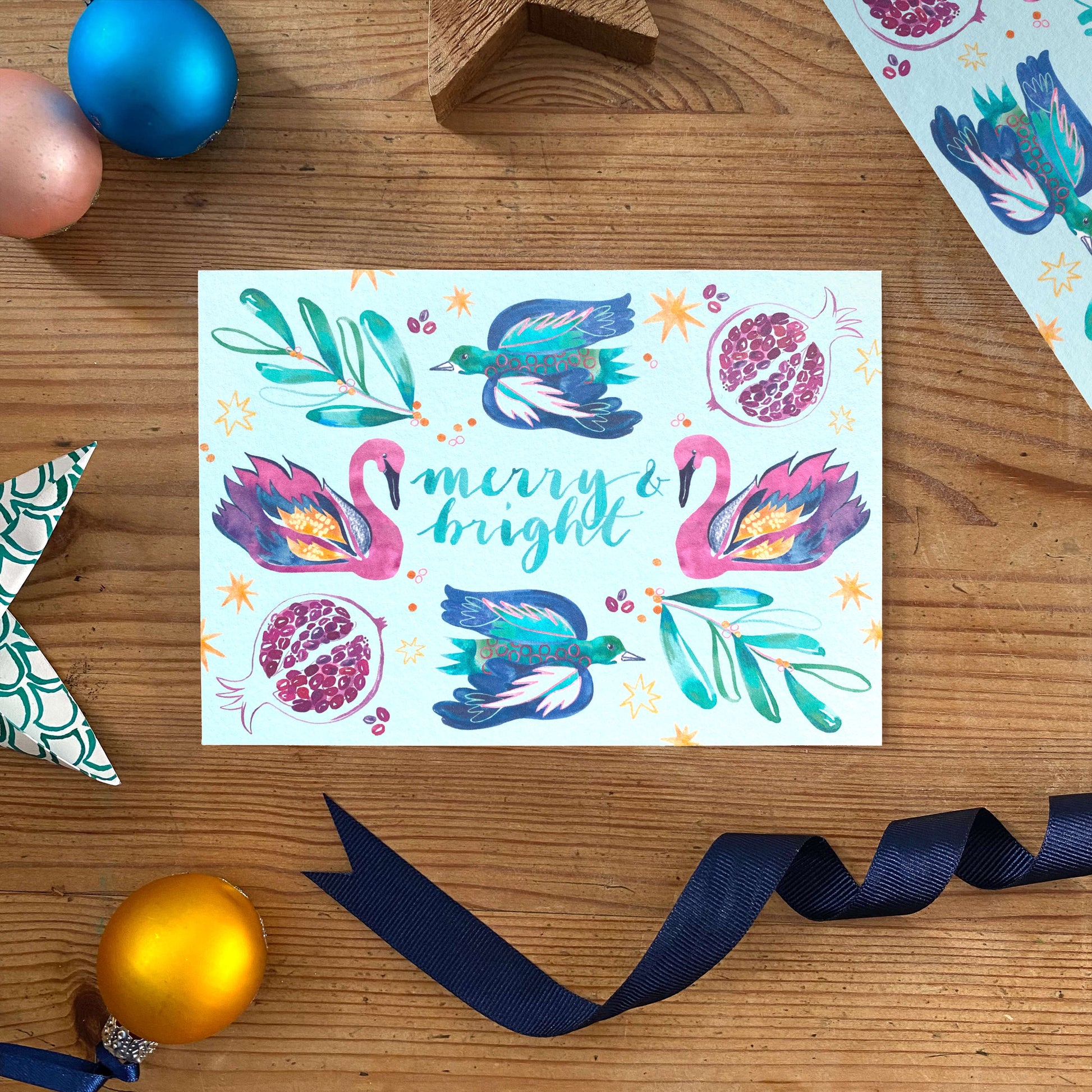 ‘Swans & Swallows’ - a truly merry and truly bright card to send your finest festive wishes this Christmas.