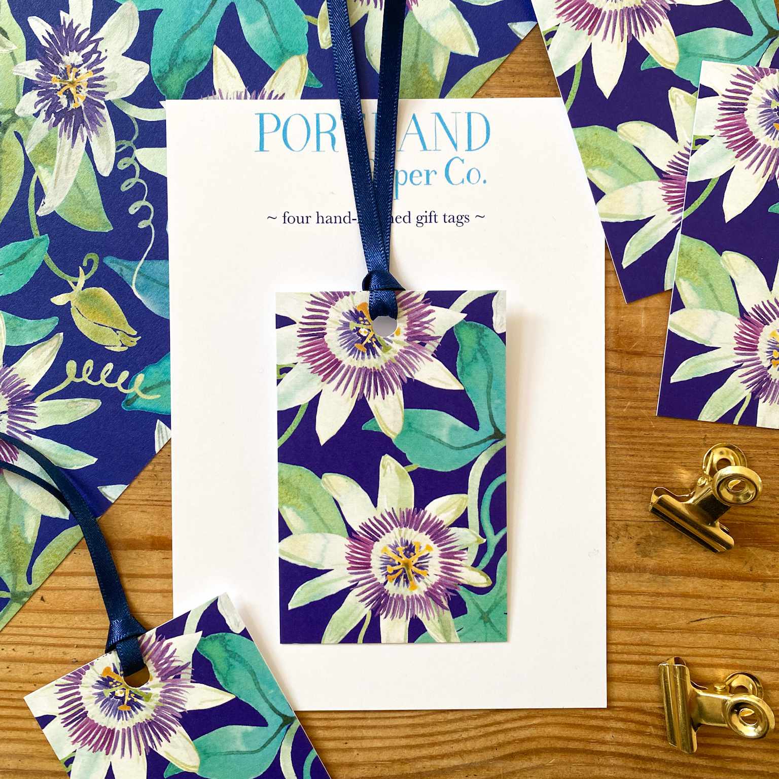 These passion flower gift tags are designed as the ultimate in coordination with the passion flower wrapping paper - or work brilliantly on their own as the finishing touch to some simple kraft paper wrap.