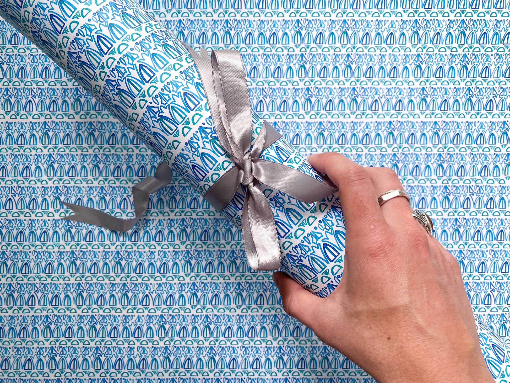 Inspired by Portuguese azulejo tiles, this turquoise tile pattern makes the ideal wrapping paper all year round.