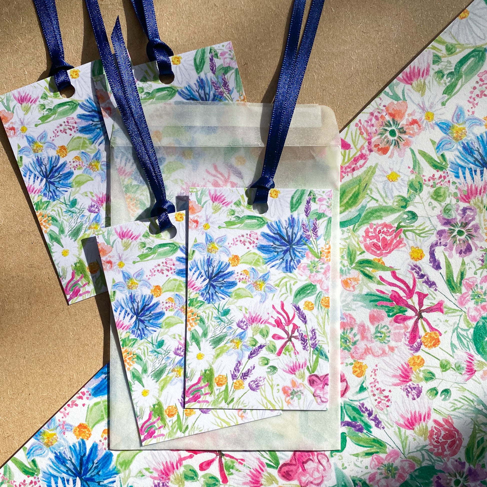 They are printed on 300gsm uncoated cardstock and are finished with a navy ribbon. These tags are the ideal match for the ‘Wildflower’ wrapping paper, ready to make the perfect finishing touch to your presents.